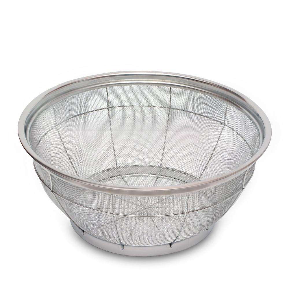 - مصفاة ستيل، شكل دائري عميق مصممة بدقة عالية، بـ شبكة من الأسلاك الداعمة الغير قابلة لصدأ، احجام مختلفة وكبيرة جداً ، لتصريف السوائل وفصلها من الطعام.