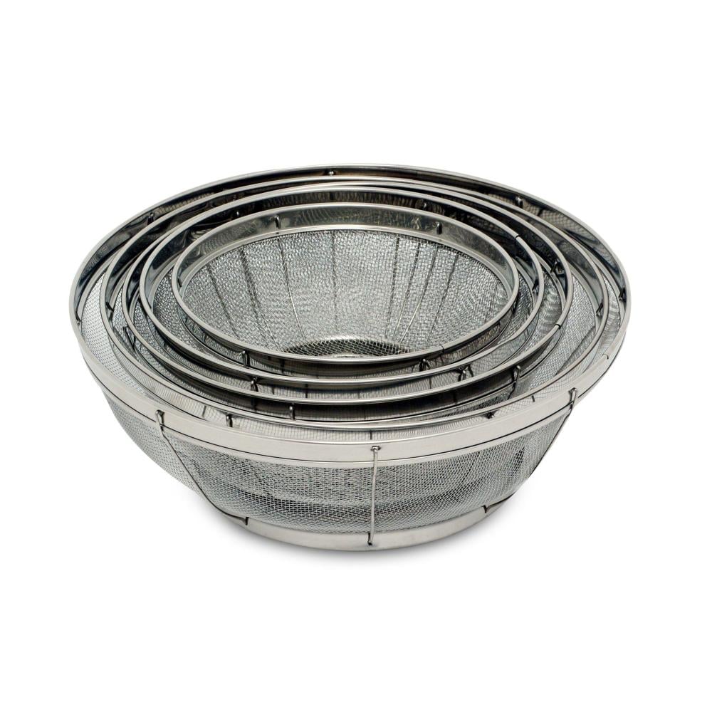 - مصفاة ستيل، شكل دائري عميق مصممة بدقة عالية، بـ شبكة من الأسلاك الداعمة الغير قابلة لصدأ، احجام مختلفة وكبيرة جداً ، لتصريف السوائل وفصلها من الطعام.